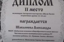 "Зирәклек бай Әкият"белем бирү учреждениеләре укучылары, укучылары һәм педагогик хезмәткәрләре арасында үткәрелгән иҗади эшләр Республика конкурсы нәтиҗәләре. Логинова Т. - 3 урын, Шәвәлиева А. - 2 урын, Шәвәлиева с. Б. (рус теле һәм әдәбияты укытучысы) - 2 урын. Җиңүчеләрне котлыйбыз.