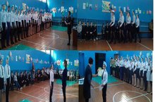 Традиционно прошел Смотр строя и песни, в нем приняли участие учащиеся 5-9 кл.