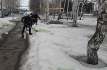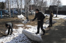 по уборе пришкольной территории от снега и мусора (приняли участие 32 ч. )