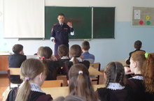беседу и инструктаж по ПДД провел страрший лейтенант полиции инспектор по пропаганде ГИСДУ Воляков Владимир Владимирович