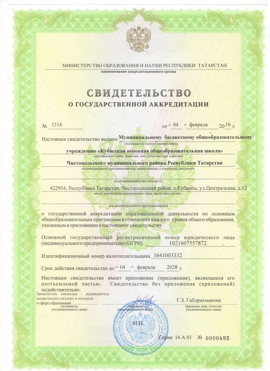 Муниципальное бюджетное общеобразовательное учреждение «Кубасская основная общеобразовательная школа» Чистопольского муниципального района Республики Татарстан \ Татарстан Республикасы Чистай муниципаль районы "Кубас төп гомуми белем мәктәбе" муниципаль бюджет гомуми белем учреждениесе