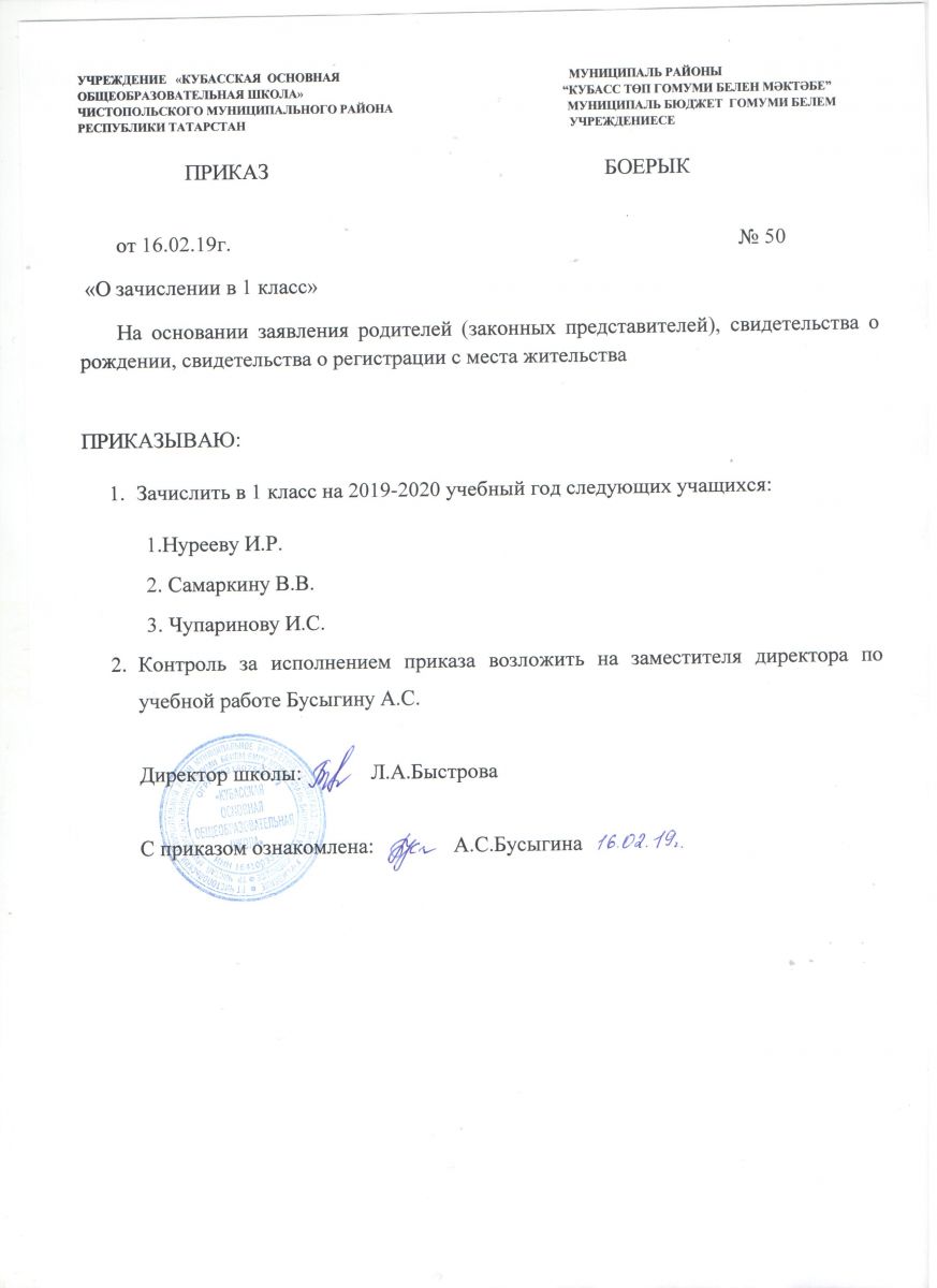Муниципальное бюджетное общеобразовательное учреждение «Кубасская основная общеобразовательная школа» Чистопольского муниципального района Республики Татарстан \ Татарстан Республикасы Чистай муниципаль районы "Кубас төп гомуми белем мәктәбе" муниципаль бюджет гомуми белем учреждениесе