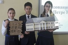 Сегодня учащиеся 8-х классов показывали проектные работы по истории на тему : "Преобразования Петра I". Самый оригинальный проект - макет здания Академии наук, который выполнили ученицы 8а класса.