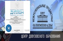 Поздравляем Дворецкую О. - победителя межрегиональной предметной олимпиады КФУ по предмету "Русский язык"!
