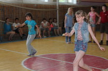 Сегодня в нашем лагере проводился татарский национальный праздник Сабантуй. После завтрака провели беседу о Сабантуе, разучили татарскую песню. Ребята с удовольствием приняли участие в таких национальных играх как бег с яйцом в ложке, разбивание горшка, бег с ведрами воды на коромысле, бег в мешках.