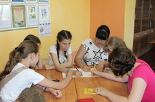 Игра “Самый-самый первый в шашки...” началась с состязаний между ребятами. А затем в них приняли участи и учителя- вожатые... С переменным успехом состязались Г.А. Коновалова и ученица лицея Журавлева Анастасия .