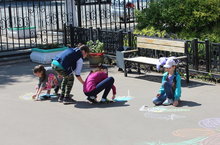 Второй день в лагере прошел под названием «Ключ на старт». После вкусного завтрака был объявлен конкурс «Волшебные мелки». Каждому, умеющему рисовать была предоставлена возможность показать свой талант.