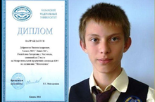 Поздравляем Никиту Доброхотова с ПОБЕДОЙ в Межрегиональной предметной олимпиады КФУ по математике!