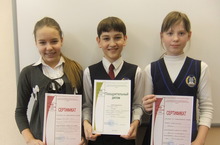 24.01.14 в г.Казань на базе МБОУ «Гимназия №75» прошли 12-е Рождественские чтения. Дипломом призёра отмечен ученик 6-а класса Шарифуллин Айнур, а Ткачёва Юлия (6-а) и Доброхотова Алина (6-б) отмечены Сертификатами участника. (Уч. Малолеткова В.А.)