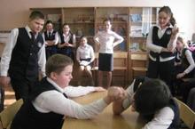 Девочки не только приготовили интересную программу для одноклассников, но и устроили состязания между мальчиками, поделив их на две команды.