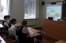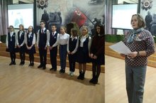 В начале октября ученики 8б класса (кл.руководитель Абдуллина Д.Д.) провели первое в этом учебном году заседание клуба "Внуки Героев". Мероприятие называлось "Начало Победы", было посвящено 78-летию начала обороны Москвы.