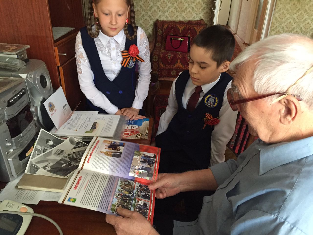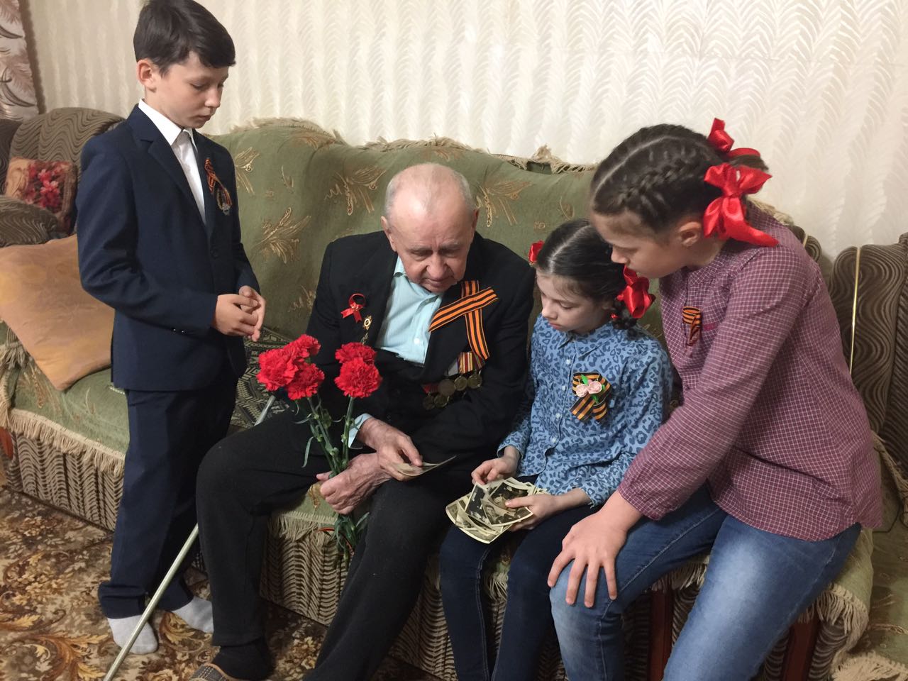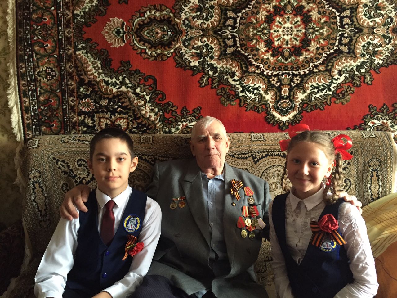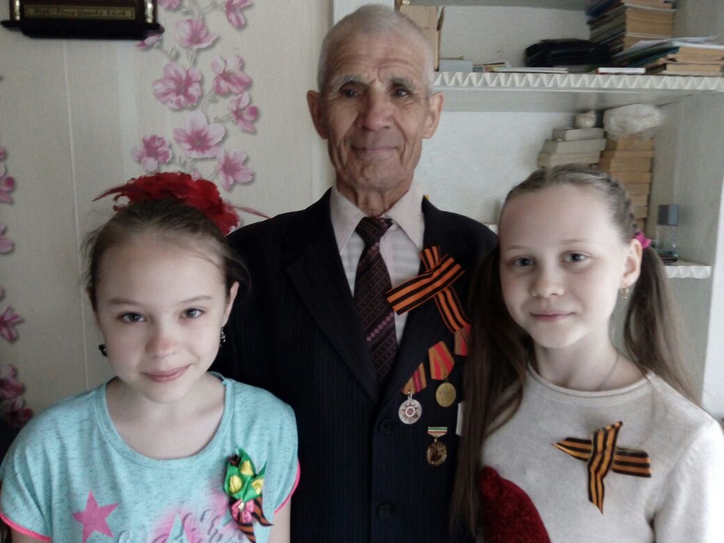Ученики 5Б класса Рясова Настя, Карпова Диана, Шайхутдинов Алмаз посетили ветерана - Прохорова Григория Сергеевича. Ему 91 год. Воевал и служил на Дальнем Востоке с 1944 по 1951 год в морской авиации. Воевал с японцами и корейцами на военном самолете - штурмовик, разбивая вражеские позиции и сбивая вражеские самолеты. Имеет множество наград, медалей.