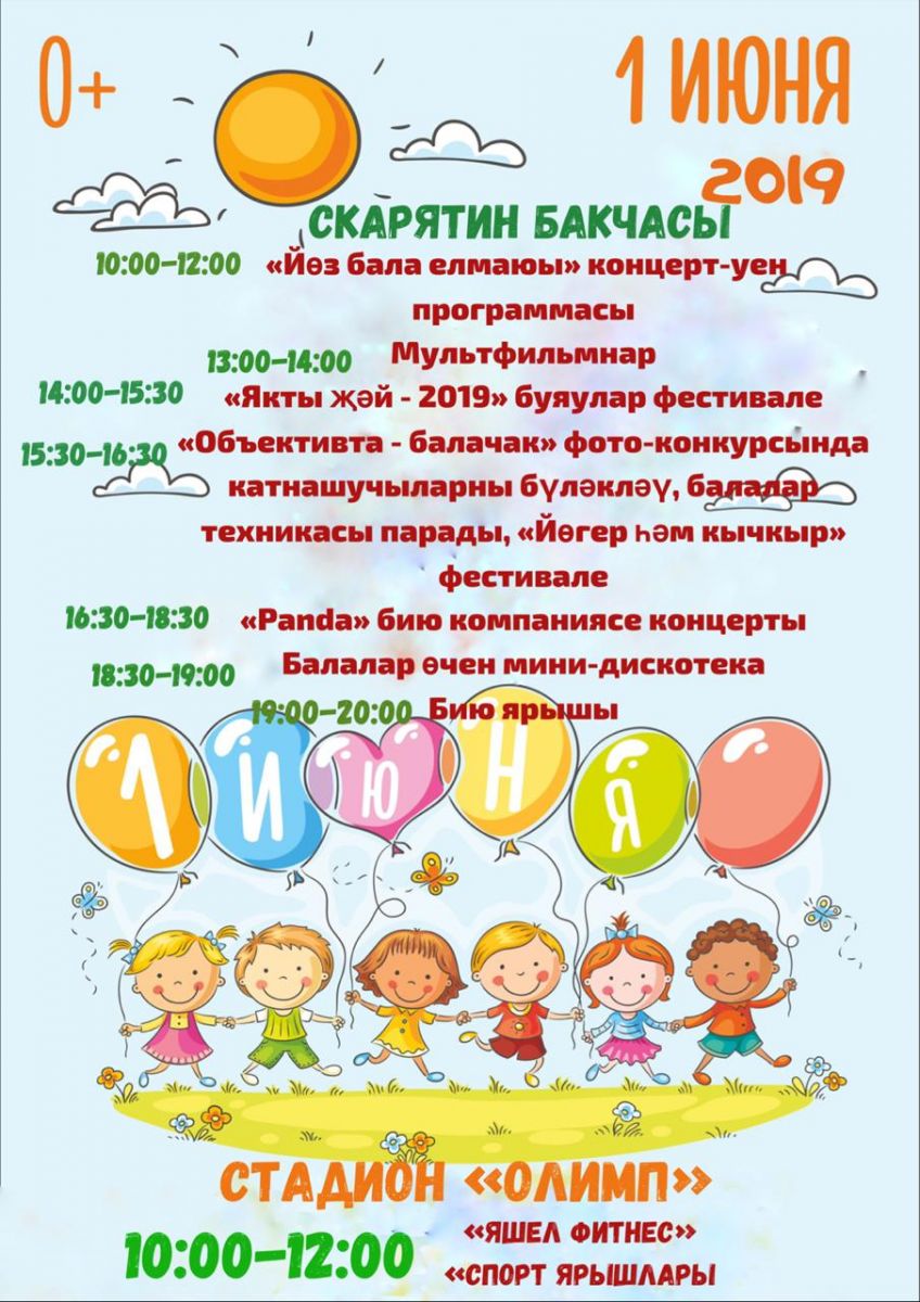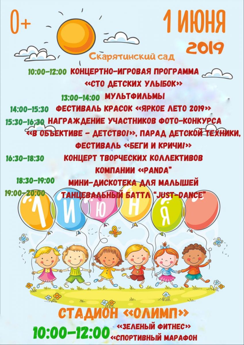 Опубликовано: 30.05.20191 июня состоится концертно-игровая программа в Скарятинском саду с 10.00 до 20.00 час., на стадионе "Олимп" с 19.00 до 12.00 час. Приглашаются все желающие!