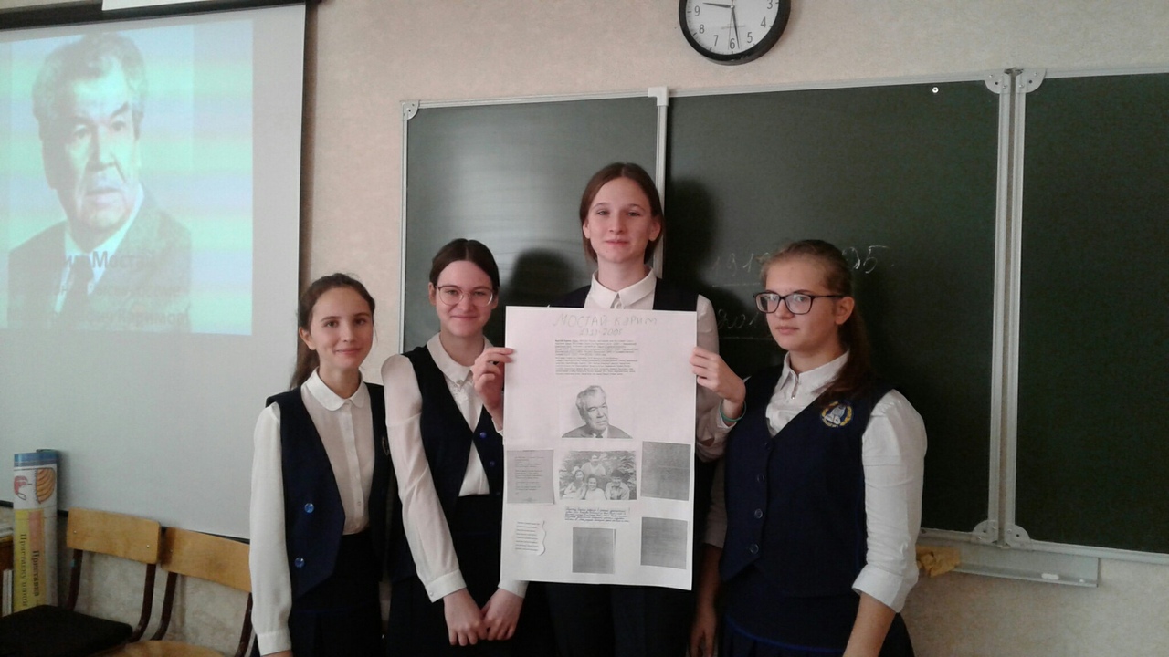 6-7 нче сыйныф укучылары Мостай Кәримнең тормышы һәм иҗаты турында фильм,спектакльләреннән өзекләр карадылар. Башкорт телендә һәм татар теледә язылган әсәрләреннән өзекләр укыдылар.