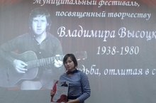 Ученица 8 класса Онюшкина А. выступила на муниципальном фестивале, посвящённом творчеству В.Высоцкого. Руководитель учитель русского языка и литературы Александрова Е.Л..