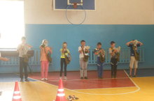 В пришкольном лагере "Лучик" прошли спортивные состязания "Будущие солдаты". Дети участвовали в перетягивании каната, надевании противогаза, эстафете.