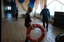 Государственный инспектор по маломерным судам Лобанов А.В. провёл показательное занятие по безопасному поведению на воде, показал, как используются спасательный круг и конец Александрова.