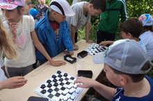 Жизнь пришкольного лагеря «Лучик продолжается». Дети приняли участие в соревнованиях между отрядами, весёлые конкурсы на стадионе часового завода «Восток», игры в шашки. Были проведены беседы по ПДД «Законы дорог».