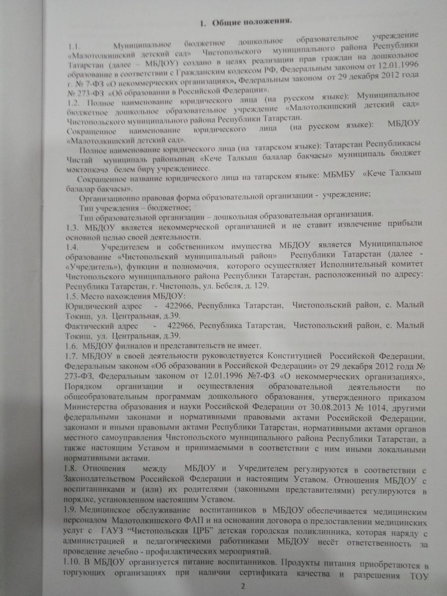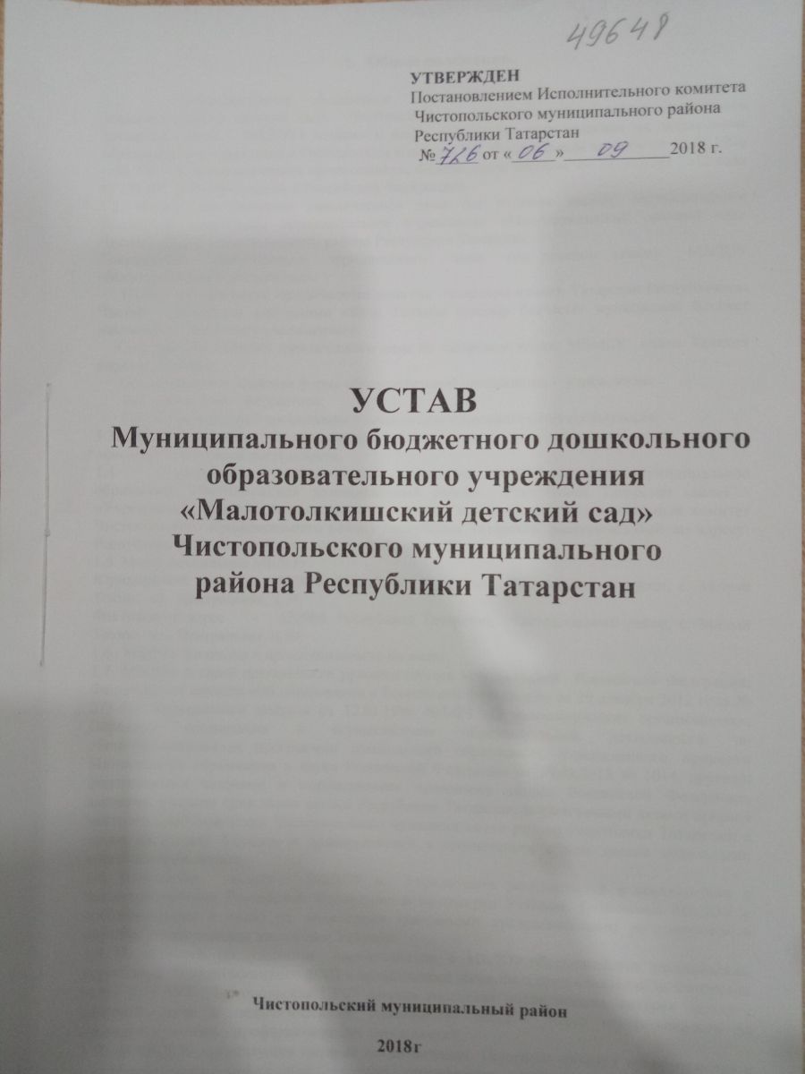 Муниципальное бюджетное дошкольное образовательное учреждение «Малотолкишский детский сад» Чистопольского муниципального района Республики Татарстан
