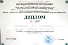 09 марта состоялась IV Республиканская научно-практическая конференция «ЭКОЛОГИЯ, МИР И МЫ». В секции «Мастер своего дела» свой проект презентовал Хабибуллин Ленар Асгатович, учитель географии МБОУ «Муслюмкинская средняя общеобразовательная школа» Чистопольского муниципального района Республики Татарстан.