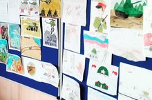 Продолжается Месячник гражданско-патриотического воспитания. Выставка рисунков.