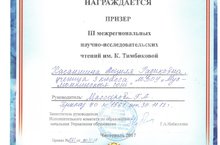 Поздравляем нашу ученицу 3 класса Назилю Хасаншину - призера III межрегиональных научно-исследовательских чтений имени Кояш Тимбиковой. Молодец!