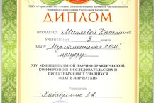 31 марта учащаяся 8 класса Миняева Кристина участвовала и стала призером в XIV муниципальной научно-практической конференции исследовательских и проектных работ учащихся "Шаг в мир науки" . Поздравляем!
