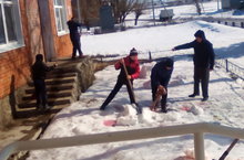 Мәктәп яны территориясеннән кар чистарту буенча субботникта укучылар теләп катнаштылар.