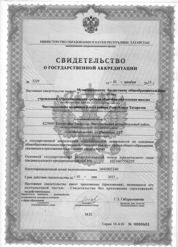 Муниципальное бюджетное общеобразовательное учреждение «Муслюмкинская средняя общеобразовательная школа» Чистопольского муниципального района Республики Татарстан/Татарстан Республикасы Чистай муниципаль районы "Мөслим урта гомуми белем мәктәбе" муниципаль бюджет белем учреждениесе
