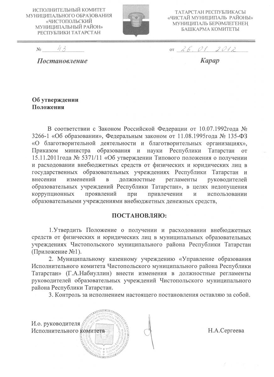 Постоновление УО ЧМР Об утверждении Положения