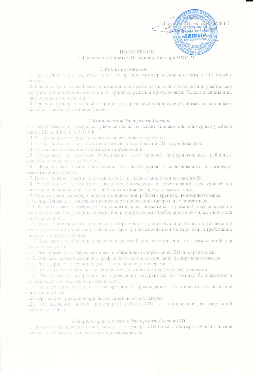 Положение о тренерском совете (2 стр,) -Тренер советы турында нигезләмә (2 бит)