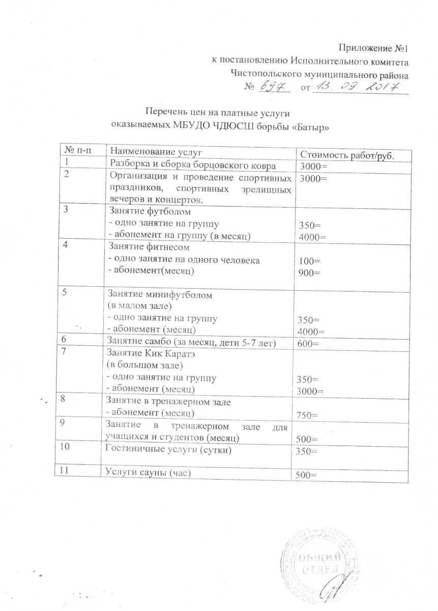 перечень цен на платные услуги - Түләүле хезмәтләр бәяләре исемлеге