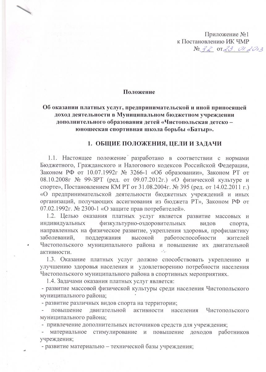 положение об оказании платных услуг-1 - Түләүле хезмәтләр күрсәтү турында НИГЕЗЛӘМӘ-1