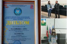 Руководитель Исполнительного комитета Чистопольского муниципального района Эдуард Рустамович Хасанов вручил Насейкиной Анне ученице Детской художественной школы диплом победителя VI Всероссийского героико-патриотического фестиваля детского и юношеского творчества «Звезда Спасения» -