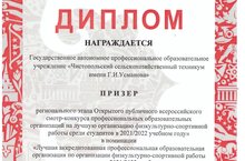 Техникум стал призером регионального этапа Открытого публичного всероссийского смотр-конкурса профессиональных образовательных организаций на лучшую организацию физкультурно-спортивной работы среди студентов в 2021/2022 учебном году. Поздравляем!