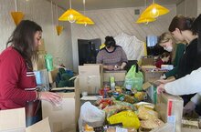 Студенты- волонтеры техникума помогают в распределении гуманитарного груза, собранного в помощь беженцам из Луганской и Донецкой народных республик.