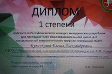 В ГАПОУ "Зеленодольский механический техникум" состоялся конкурсный очный тур защиты методических разработок преподавателей СПО Республики Татарстан для технических специальностей. Преподаватель английского языка Куличкова Елена Александровна заняла 1 место и получила Диплом 1 степени. Поздравляем с заслуженной победой и желаем дальнейших творческих успехов!