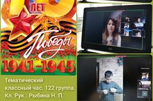 Со студентами 122 группы проводился онлайн классный час, посвященный 75 - летию Победы, где приняли участие не только студенты, но и родители.