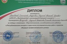 25 апреля на базе Чистопольского многопрофильного колледжа состоялся конкурс студенческих исследовательских работ и проектов "Формула профессионального успеха". Студенты 122 группы Рыковский Дмитрий и Шустов Николай под руководством преподавателей Челышевой А. В. и Лоскутовой Л. М. стали победителями конкурса в номинации "Перспективность исследовательской работы".