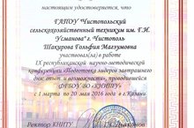 На базе ФГБОУ КНИТУ города Казани проведена IX Республиканская научно- методическая конференция на тему: «Подготовка лидеров завтрашнего дня; опыт и возможности». Преподаватель химии Шакирова Гольфия Магзумовна принимала участие в работе конференции и выступила с докладом. Тема доклада: «Технология разработки УМК для проведения лабораторных и практических занятий по дисциплине «Химия».