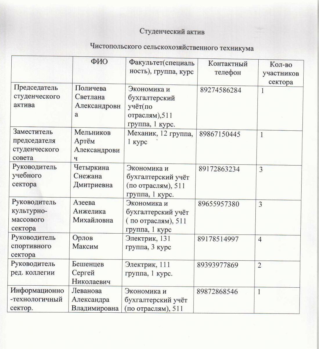 Студенческий актив Чистопольского сельскохозяйственного техникума