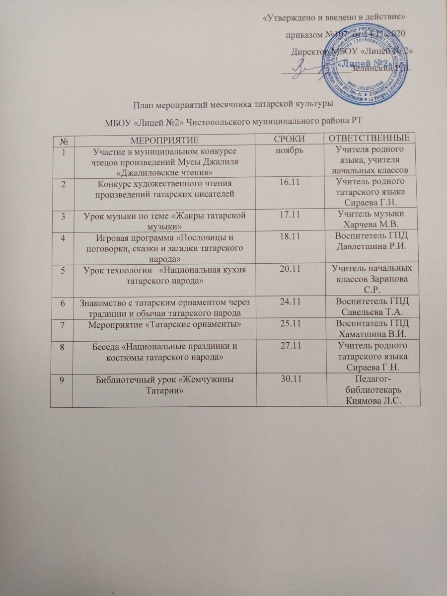 Муниципальное бюджетное общеобразовательное учреждение «Лицей № 2» Чистопольского муниципального района Республики Татарстан/ Татарстан Республикасы Чистай муниципаль районының «№ 2 лицей» муниципаль бюджет гомуми белем бирү учреждениесе
