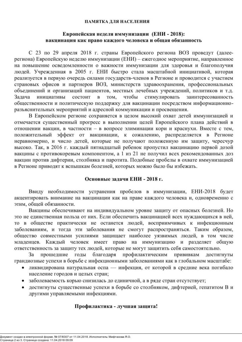 Европейская неделя иммунизации (ЕНИ - 2018)