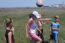 Ребята лагеря "Солнышко" каждый день играют в подвижные игры на площадке, на поляне, на берегу реки.