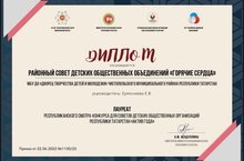 Объединение «Горячие сердца» стало лауреатом смотра-конкурса для советов детских общественных организаций Республики Татарстан «Актив года» (Руководитель: Ермолаева Е.В.). Поздравляем ребят и желаем дальнейших успехов