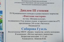 Муниципальное бюджетное учреждение дополнительного образования «Дворец творчества детей и молодежи» Чистопольского муниципального района Республики Татарстан/Татарстан Республикасы Чистай муниципаль районының «Балалар һәм яшьләр иҗаты сарае " Муниципаль бюджет өстәмә белем бирү учреждениесе