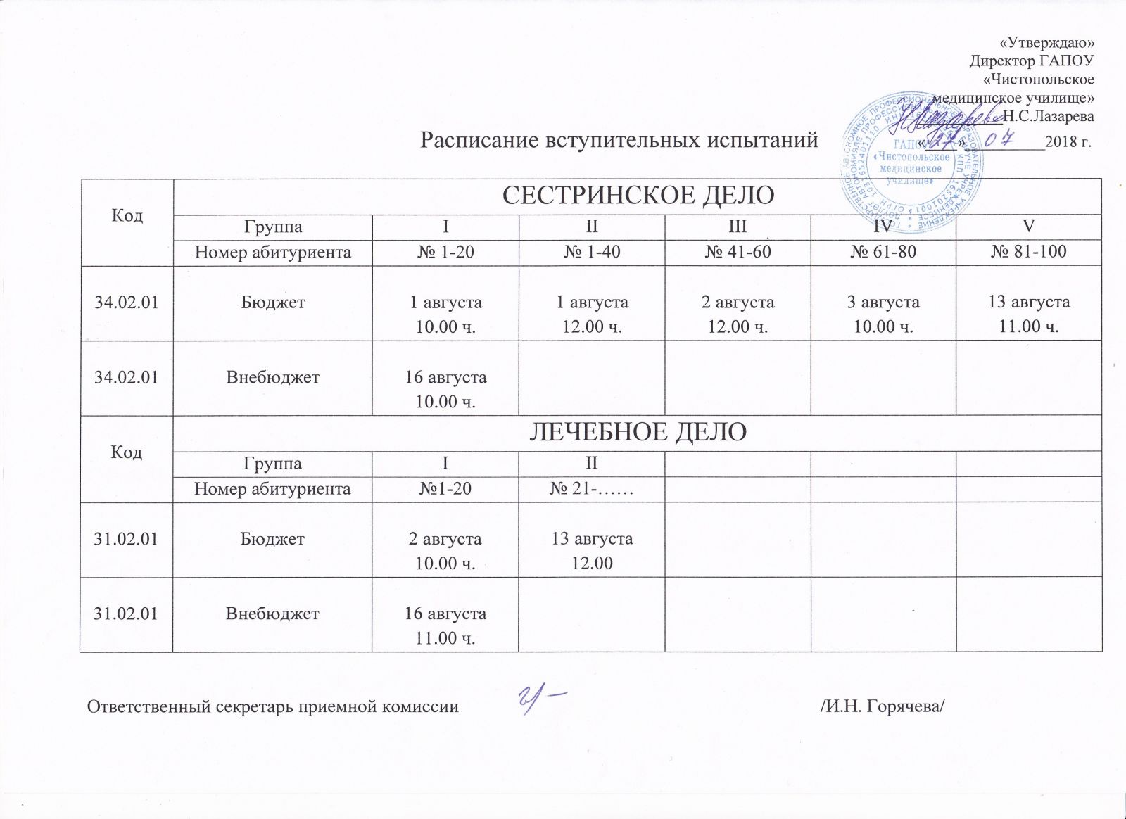 Доброго дня! Сегодня, 13 августа, стали известны списки кандидатов на зачисление на бюджетные места в Чистопольское медицинское училище!