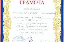 8 сентября команда студентов Чистопольского медицинского училища приняла участие в интеллектуальном ринге "Наше будущее в наших руках!", посвященном Дню молодого избирателя. По итогам конкурса наши ребята заняли II место. Молодцы!