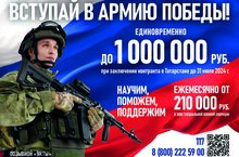 В Республике Татарстан принимаются дополнительные меры, направленные на материальное стимулирование граждан, заключивших контракт для прохождения военной службы в Вооруженных Силах Российской Федерации. В настоящее время в Республике Татарстан единовременная выплата гражданам, заключившим контракт с Министерством обороны Российской Федерации, увеличена и составляет до 1000000 рублей.