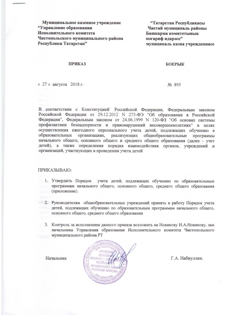 Приказ Управления образования о Порядке учета детей, подлежащих обучению по образовательным программам начального общего, основного общего, среднего общего образования (порядок, приложение 1, приложение 2 , приложение 3)